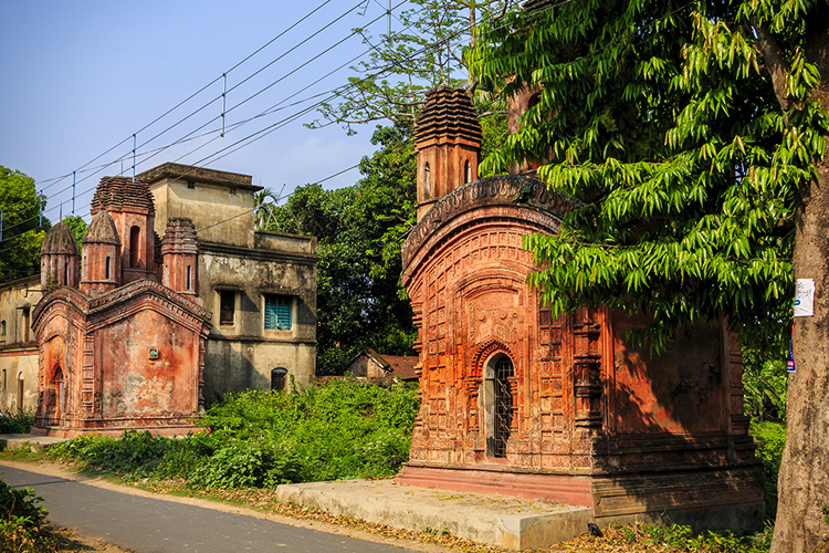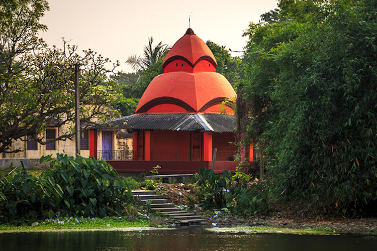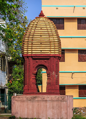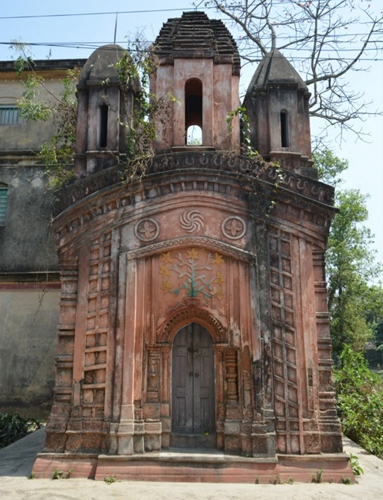 On the left side from the Ashrama lies Jora Mandir Tala and Mandir Bakul, a large, though somewhat deteriorated, pond-side temple structure. Nearby is an old Radha-Krishna temple. A little further ahead is the Gaureshwar Shiva Temple, followed by the Sri Sri Gopal Jiu Temple, and along the way, the Jatileshwar Shiva Temple can also be seen.